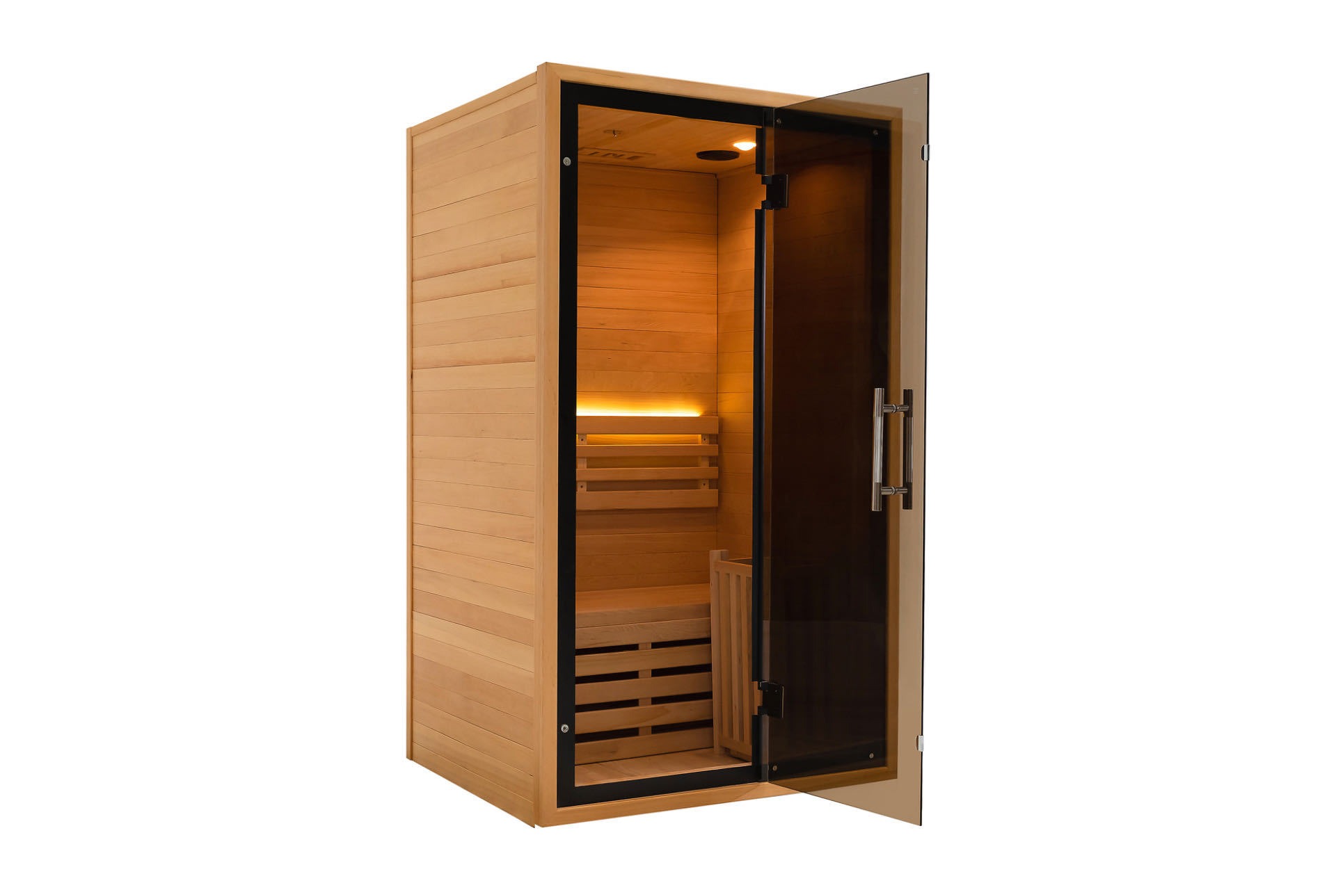 Selles saunas on vundamendiks naturaalne täispuit, tuumaks on nutikas tehnoloogia ja esiletõstetud hall-must klaasuks. See loob uue etalon kodu heaolule kõigis aspektides alates välimusest kuni funktsioonini. Lase nautida professionaalsel tasemel saunahooldust kodust lahkumata ning alustada elustiiliga, mis ühendab endas tervist ja stiili.