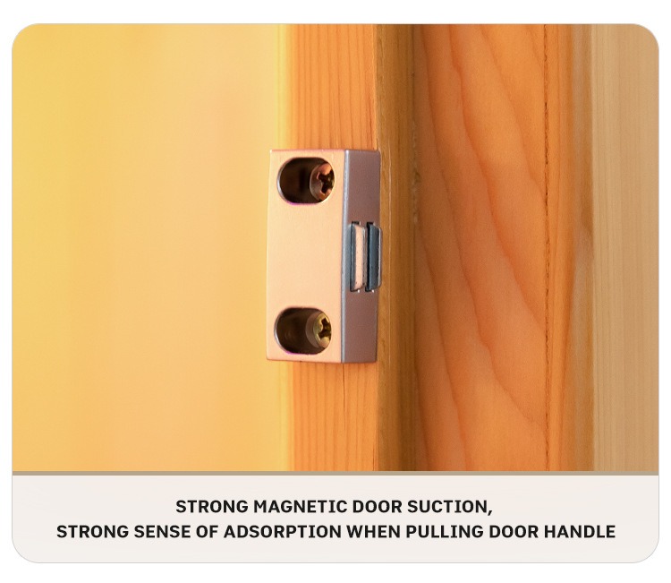 - Metallist hinged ja magnetiline ukselukk: metallhingedel on tugev kandevõime ilma deformatsioonita ning magnetiline ukseriiv adsorbeerub tihedalt, et lukustada kuumust ja privaatsust.