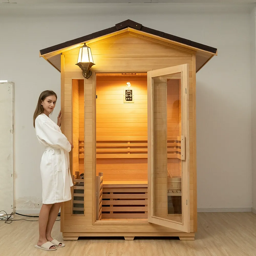 Traditsiooniline saunaahju küttesüsteem taastab klassikalise aurusaunaelamuse. Intelligentse temperatuurikontrollisüsteemiga saab see auru temperatuuri ja kestust täpselt reguleerida, tagades iga sauna ideaalse oleku. Leili on külluslik ja jaotub ühtlaselt ning soe kuumus mähib kogu keha, luues mugava ja mõnusa saunakeskkonna. Fengshui ülemise klaasukse disain on geniaalne, mis on läbipaistev ja ilus, viitab samas soodsale. Ukse kõrvale paigaldatud retro seinavalgusti (välistingimustes veekindel mudel) kiirgab öösel põledes sooja pehmet valgust ning sees olev madalpinge plahvatuskindel lamp tagab ohutu kasutamise, näidates läbimõeldust igas detailis. Pinge toetab globaalset kohandamist ning suure võimsusega adaptiivse kaabli abil on välistingimustes elektrikasutus ohutu ja muretu.