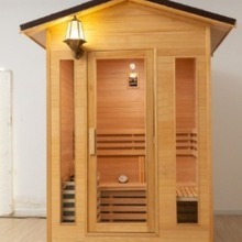 Raudpuidust välisaunaruum seinalambi ja klaasuksega. Iste ja seljatugi sobivad ideaalselt inimese kehakõveraga, muutes selle mugavaks ka pikal istumisel ja hajutades tõhusalt vastusurvet. Mitmepunktiline ventilatsiooni disain allosas soodustab tõhusat õhuringlust, parandades veelgi saunakogemuse mugavust. Samal ajal on see läbimõeldult varustatud hoiusüsteemiga, nagu topsihoidjad, käterätikuivatid ja ajaleheriiulid, mis võimaldab teil lõõgastudes hõlpsasti vajalikele esemetele juurde pääseda koos täielike humaniseeritud detailidega.