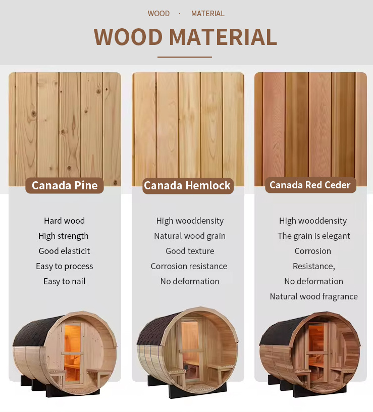 Põhikütteseadmed: Õuespetsiifiline auruküttesüsteem (kahekordne sise- ja välisjuhtimise valik, tuulekindel disain), maheda ja mittekuiva leiliga, ühtlase ja kiire temperatuuritõusuga, kohandub välistemperatuuri kõikumisega, tagades saunale mugava ja sooja saunakeskkonna.Välisklaasuks välisleiliruum.
