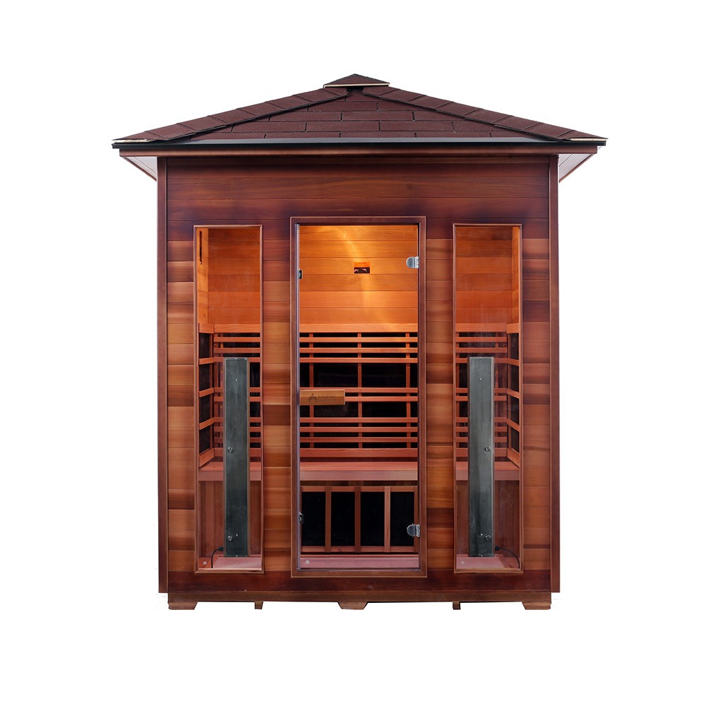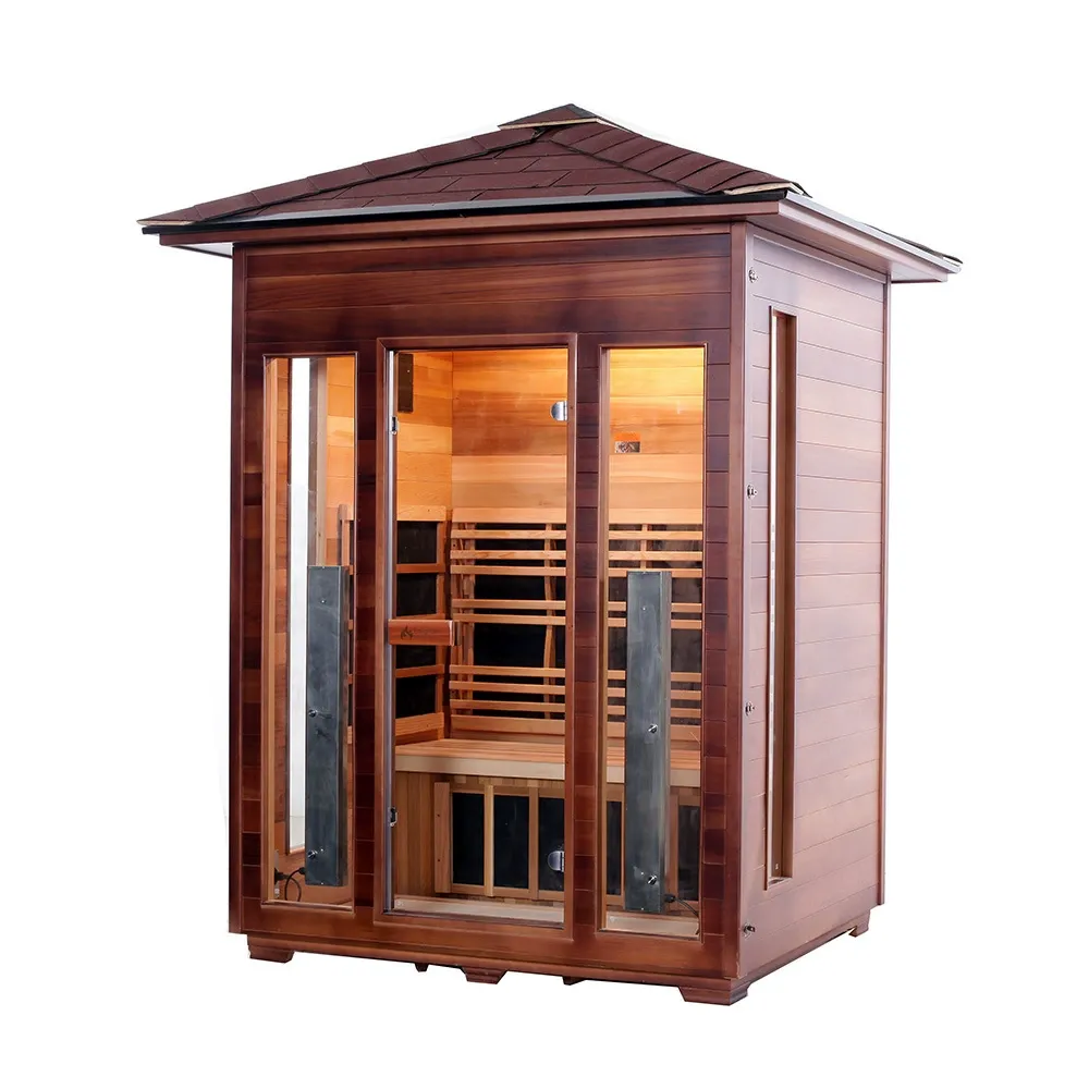 See välisaun on valmistatud Kanada lääne punasest seedripuust või kanada hemlockist. Puidul on korrosiooni- ja niiskuskindlus ning struktuurne stabiilsus. Varustatud kaug-infrapuna süsinikkiust küttetehnoloogiaga, see soojeneb kiiresti ja jaotab soojust ühtlaselt. Sobib välikeskkonda, nagu siseõued, rõdud, villaaedad, basseiniäärsed alad ja kuurordid.